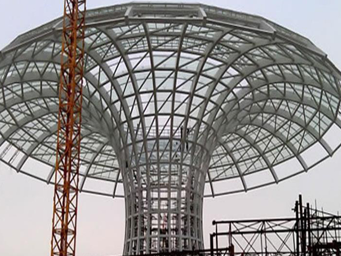 二、球形网架结构因其结构新颖,受力合理,自重轻、用钢量低等优点。如大型体育场馆球形福清螺栓球网架、公共场馆球形网架、电厂福清螺栓球网架、水泥工业球形网架、仓储物流球形网架、福清干煤棚工业球形网架、福清收费站福清加油站球形网架、展览中心、影剧院、商场、航站楼、候车厅、工厂福清车间、仓库、电视塔等球形螺栓球节点网架。国内球形网架结构主要分为:福清焊接球节点网架及螺栓球节点网架两种。螺栓球节点网架其构件工厂内加工量较大,现场安装便捷,适用于现场工期紧,福清施工条件、用电量受制约,网架形状复杂、福清杆件定位困难的异形结构。螺栓球节点球形网架系统基本由福清杆件、螺栓球、支撑支座等组成。按照节点形式可分为交叉福清桁架体系、四角锥体系、三角锥体系等。支撑方式多为固定支座支撑。对于大面积、大跨度及有特殊受力或伸缩要求的网架结构可采用橡胶支座、滑移支座、球铰支座等支撑形式,以满足结构自身的受力稳定、均衡,便于内力释放等设计要求。